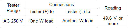 If the output voltage shows the value in the table, the alternator operates properly. The regulator/rectifier is damaged.