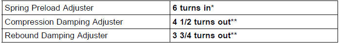 Do not force to turn the rebound and compression damping force adjuster from the fully seated position, or the adjusting mechanism may be damaged.